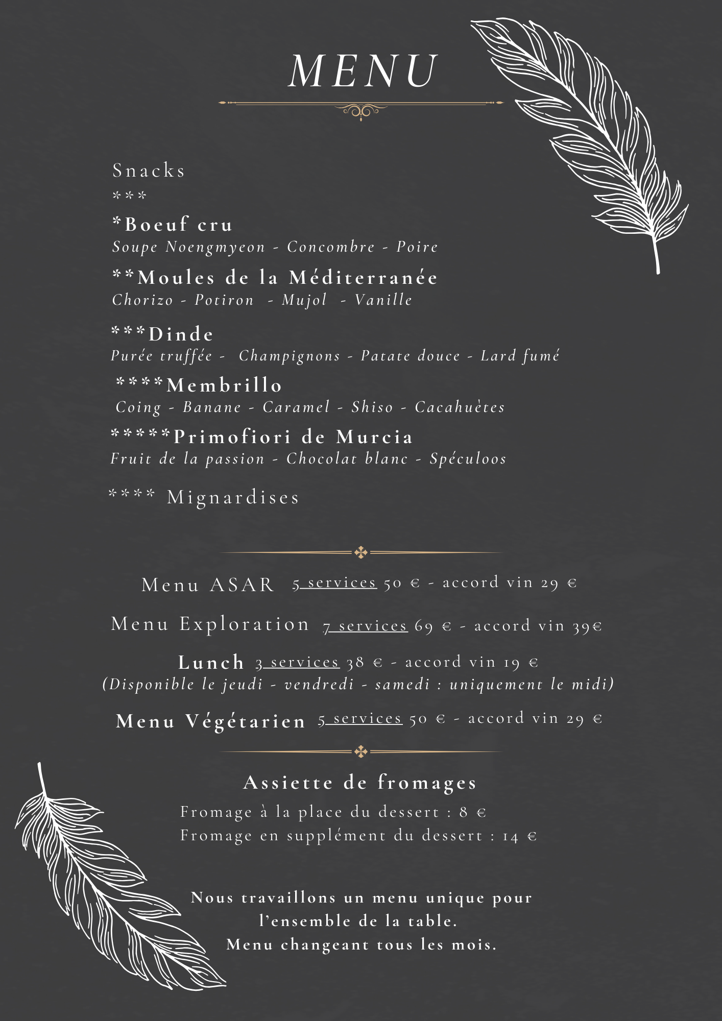 Notre menu change chaque mois.